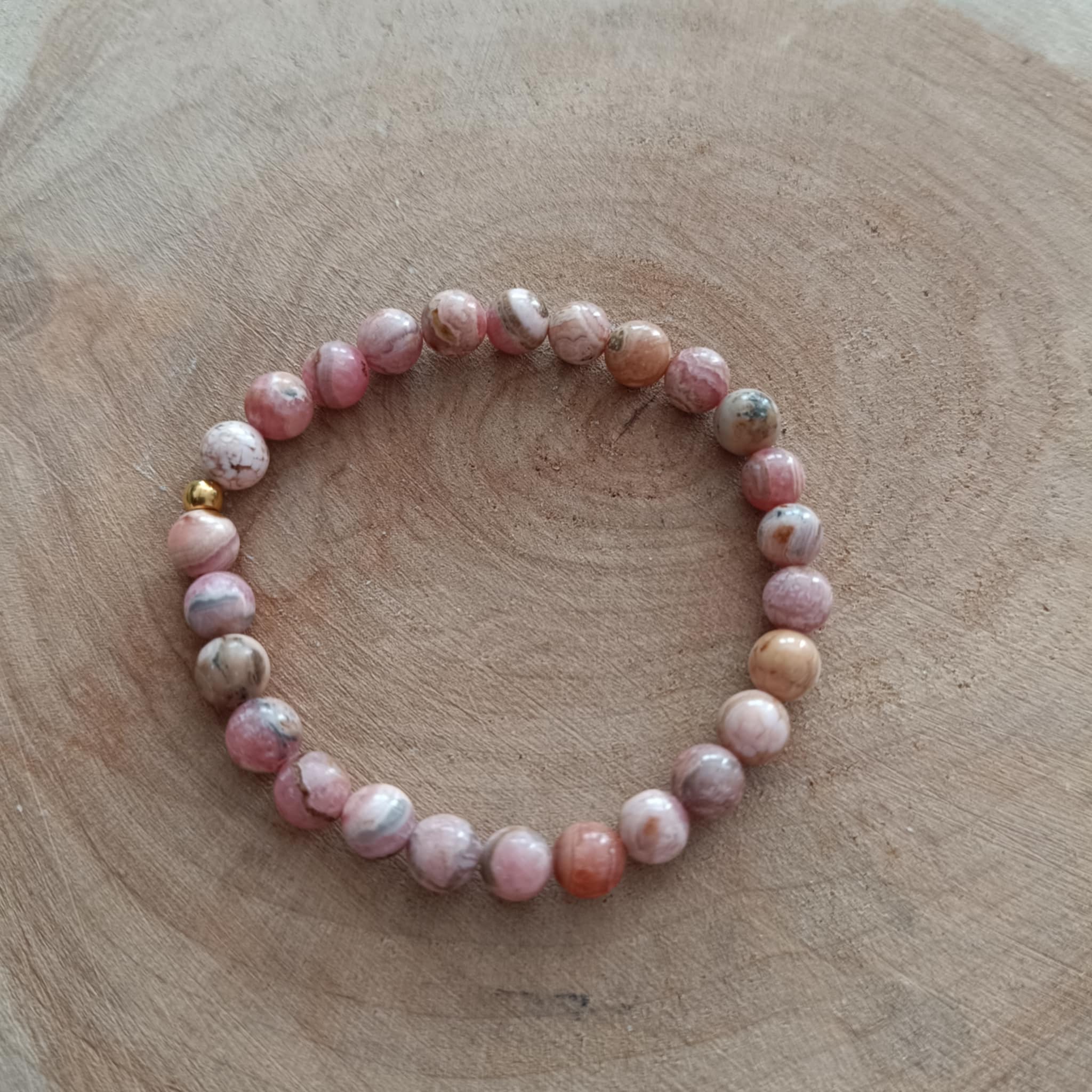 La Rhodochrosite : Intègre les énergies physiques et spirituelles, stimulant l’amour et la passion tout en dynamisant l’âme. Ouvre le cœur, soulage la dépression et encourage une perspective positive et joyeuse.