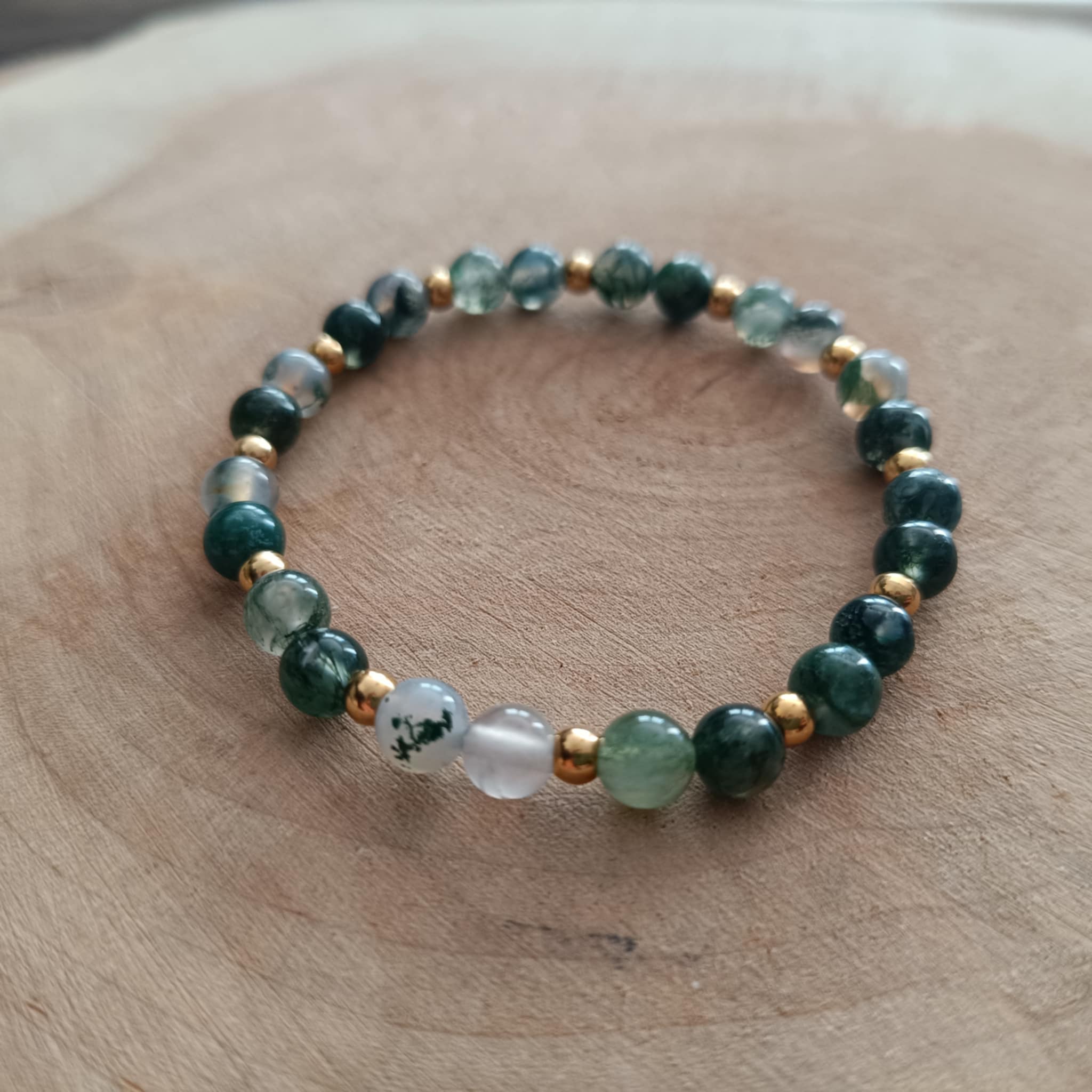 L’agate mousse : Considérée comme une pierre de guérison miraculeuse pour les prêtres tribaux du passé. Pierre de nouveaux commencements. Elle rafraîchit l’âme et permet de voir la beauté dans tout ce que l’on voit.